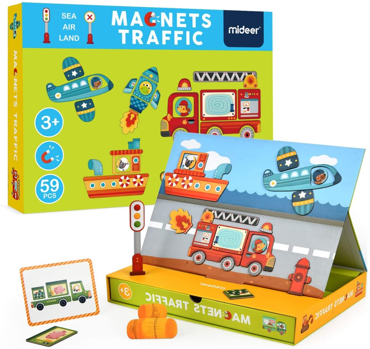 Bu aktivite setinde yer alan 58 parçadan favorilerinizi kullanarak bir yol sahnesi oluşturun: Traktörler, yol işaretleri, bir roket gemisi ve daha fazlası.